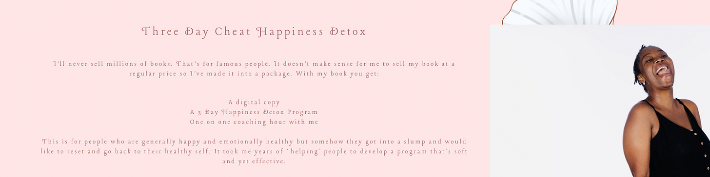 Instead of selling you just the book (because for the life of me I don’t know how to convince you to buy it) I’ve added an emotional detox program that got 10/10 reviews. Most of the tools I use as a life coach, cater to a specific individual I’m working with. This tool? It works for everybody.